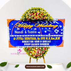 Jenis Karangan Bunga Ini Biasa Dipakai Untuk Berbagai Acara,Baik Untuk happy wedding,selamt berbahagia,barakalloh fii nikah dan sebagainya.